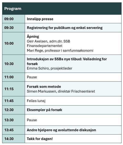 Se SSBs nye nettside for mer informasjon: https://www.ssb.no/veiledning-for-forsok